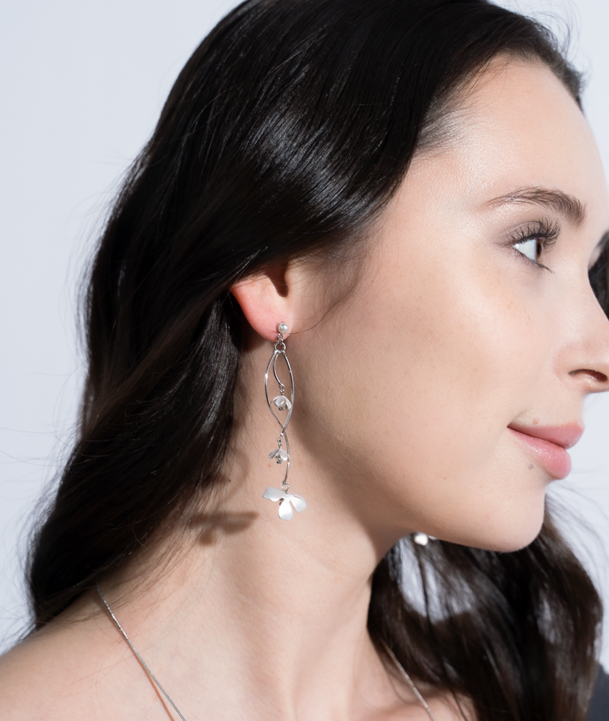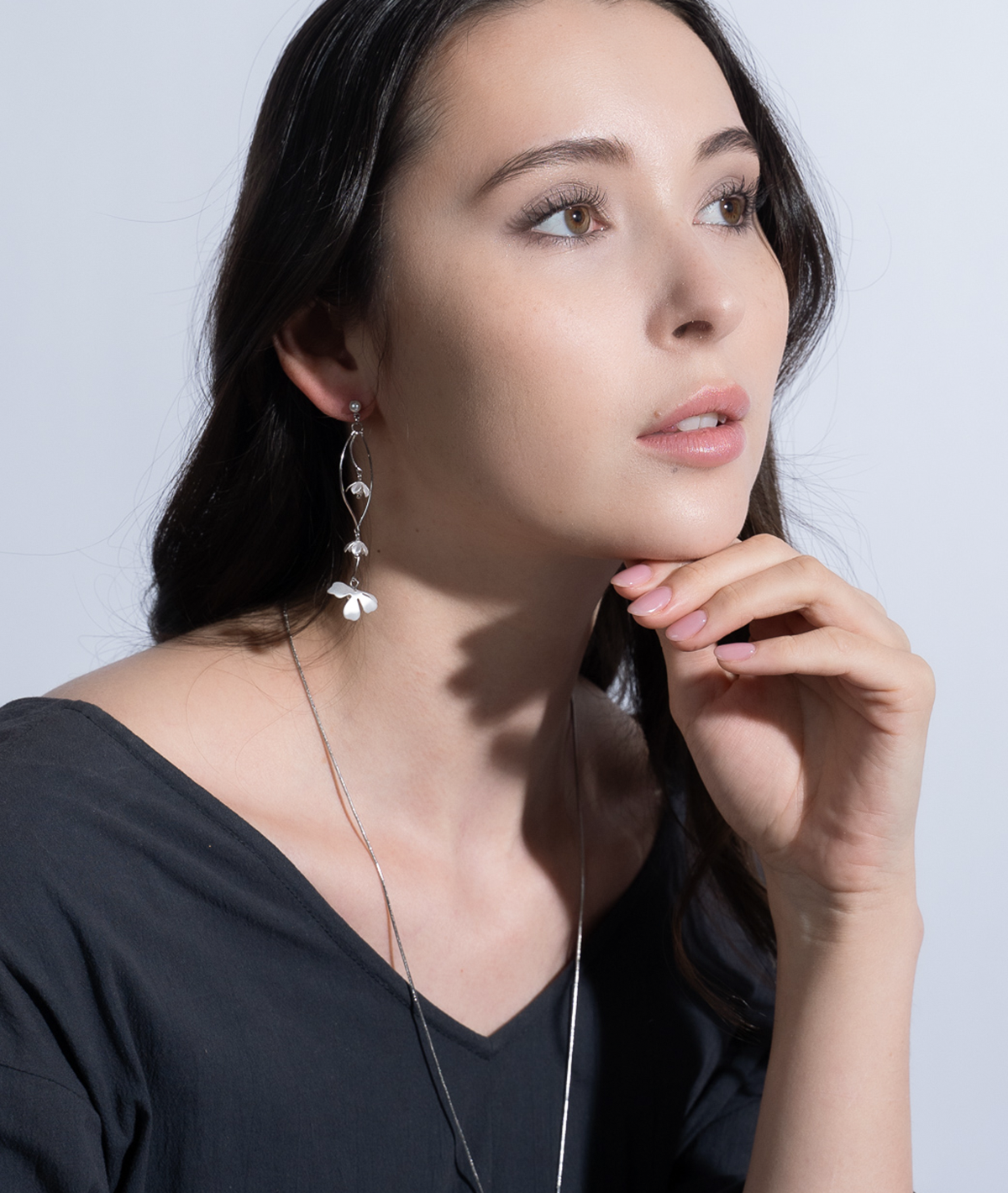 小ぶりのお花がオトナかわいい揺れるエレガントなフラワーピアスです。
