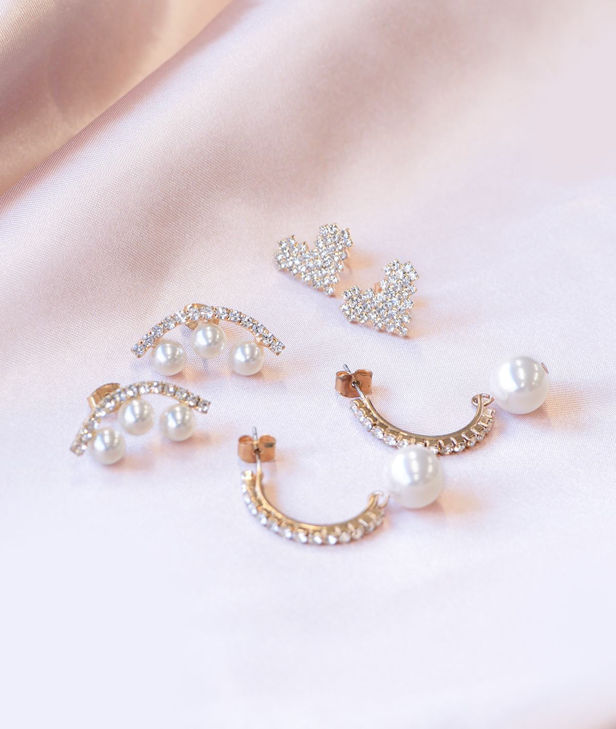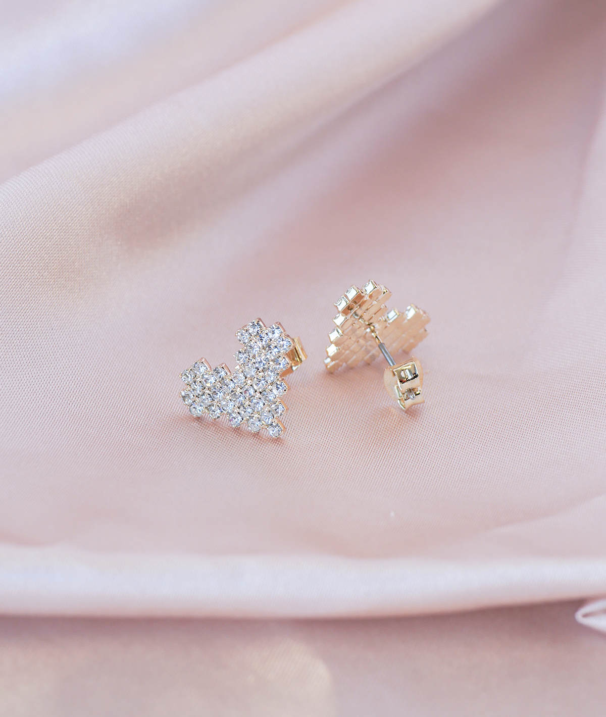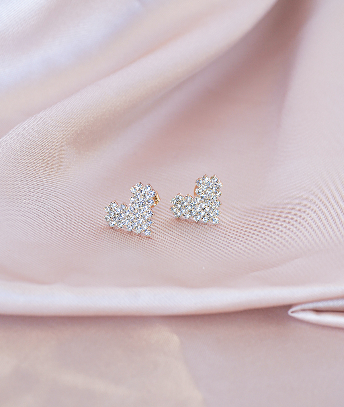 キラキラと輝くビジューをたっぷりあしらった、ハート型の定番人気アイテム。甘すぎない上品なきらめきで、大人の可愛らしさをさりげなく演出します。