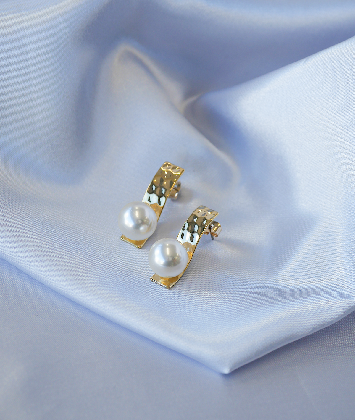 メタルの艶感とパールの上品さを組み合わせた、洗練されたメタルパールピアス。シンプルながらも立体感のあるデザインで、耳元に程よい存在感をプラスします。